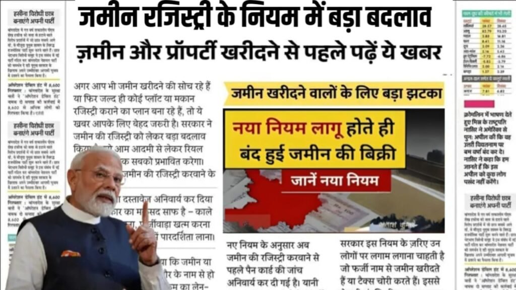 Land Registry Documents : इन 5 डॉक्यूमेंट के बिना नहीं हो पाएगी आपकी जमीन की रजिस्ट्री, नया नियम लागू। देश में जमीन खरीद बिक्री से जुड़े मामलों में धोखा भाई की घटना बढ़ रही है उसको देखते हुए बदलाव किए गए हैं क्योंकि गलत दस्तावेज के आधार पर रजिस्ट्री करवाई जाती थी इन समस्याओं को … Continue reading Land Registry Documents : इन 5 डॉक्यूमेंट के बिना नहीं हो पाएगी आपकी जमीन की रजिस्ट्री, नया नियम लागू।